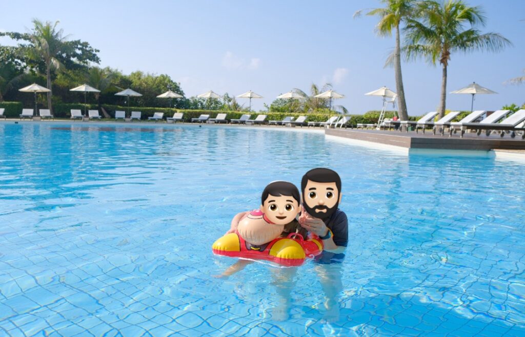 朝食を食べたら水着に着替えてプールとニライビーチへ!