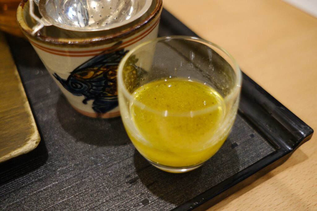 器もやちむんや琉球ガラスが使われていて、スタッフさんに「なんていう作家さんの器ですか?」とお尋ねしたら、大嶺工房や與那原さん(私の好きな作家さん!)のものだと教えてくれました。