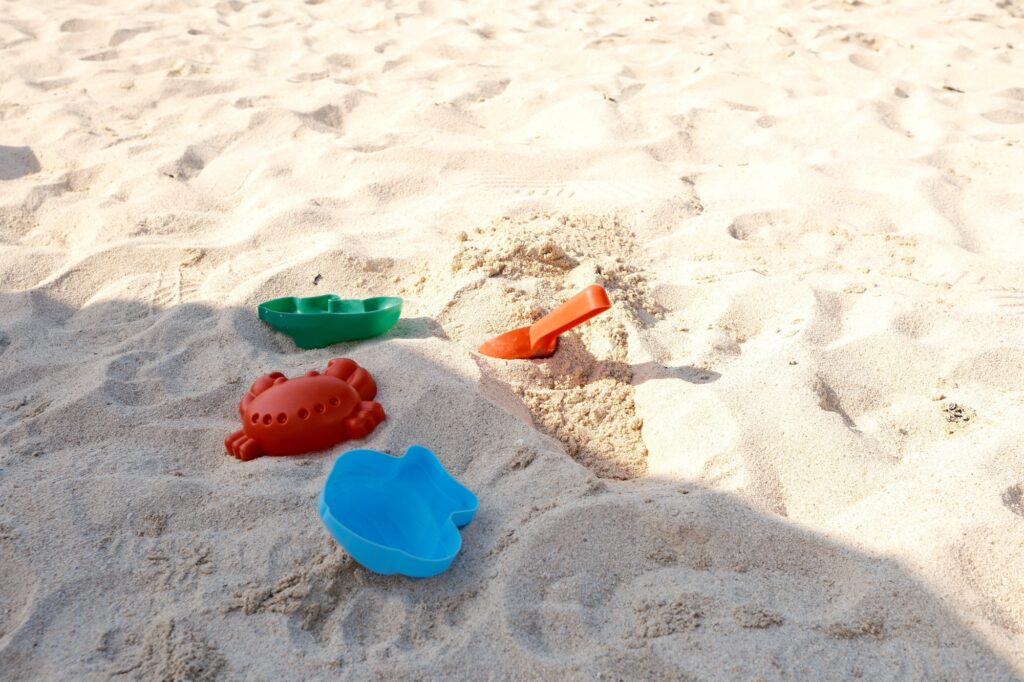 家から持ってきた砂場セットを出して砂遊びしたり、海に入ってゆられたり、大人は波打ち際で打ちひしがれたり(笑)・・・🏖️