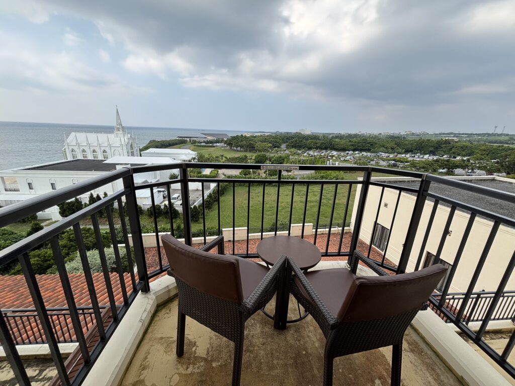ベランダを出るとこの景色!チャペル・バンタカフェ側でした。パティオじゃなくともオーシャンビューだし気持ち良い♪
